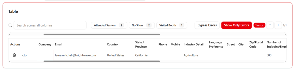Once the button is clicked, the borders will turn red and you’ll only see the rows that have issues, making it easy to spot the rows with errors.