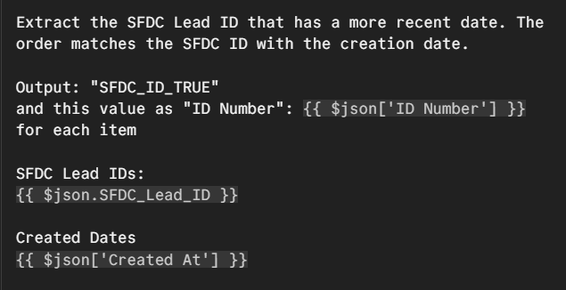 In that case, the ID Number allows us to quickly identify the SFDC in a subsequent AI step that selects the ID number with the highest value.
